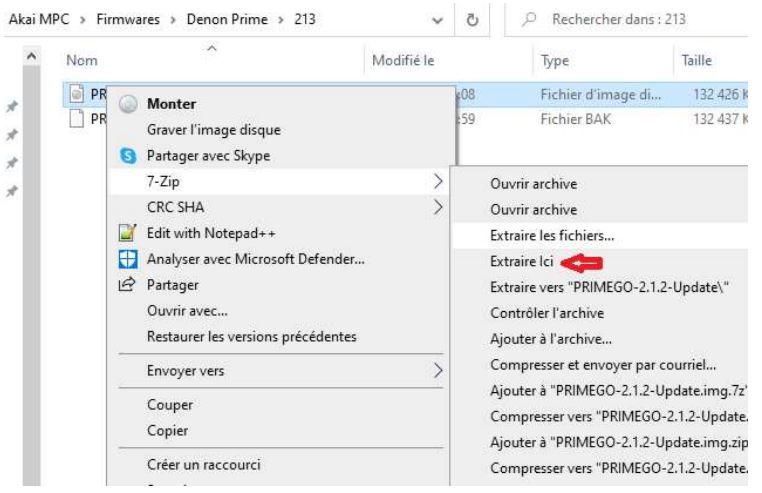 Then save the file and quit Hex Editor. Next go to file folder where you saved the .img. With 7zip, click the file and choose Extract Here :