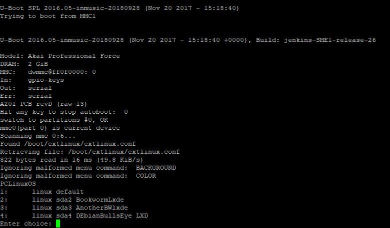 If i do nothing, there is a timeout and the default boot starts with akai stuff.
