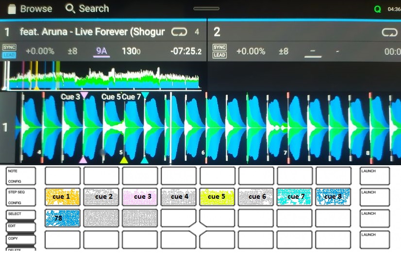 As an exemple, when you'll press the pad for the cue ( pad number 78 ) . it will send a Sysex message to the pad via sendcolor function, defined in the Device Assignment File. And then you'll have all the cue for this track